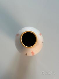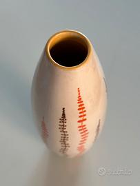 Vaso in gres smaltato anni Sessanta, con motivo floreale arancione e marrone. Altezza 28 cm.