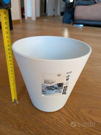 Vendo bellissimo vaso Teraplast modello "Hoop" diametro 20cm, colore Cloud (bianco). Sostenibile: realizzato in plastica riciclata di alta qualità. Pratico: dotato di riserva d'acqua interna per il benessere delle piante. Resistente: adatto sia per interno che per esterno (resistente ai raggi UV). Prodotto Made in Italy, nuovo con etichetta. Perfetto per piante da interno o per arredare il balcone con un tocco moderno e minimal. Se decidi di usarlo all'esterno, ricorda di dire all'acquirente che quel tappino sul fondova rimosso (o forato) per permettere all'acqua piovana in eccesso di uscire, evitando che le radici marciscano. Se resta in casa, il tappino va tenuto chiuso per non bagnare il pavimento!