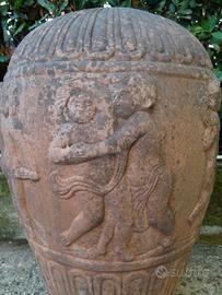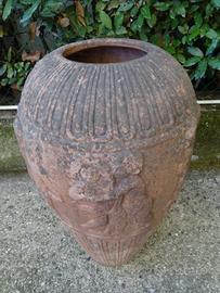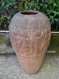 VASO TERRACOTTA ANTICO CON PUTTI IN BASSORILIEVO