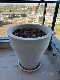Vaso tondo bianco in polipropilene da balcone o giardino con sottovaso