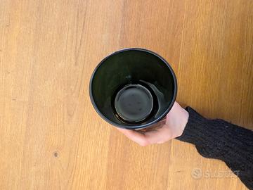 Vaso di vetro spesso fumee verde bellissimo