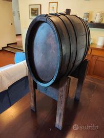 Vecchia botte in legno di rovere. Faceva parte di una batteria di 5 botti d' aceto balsamico ( dei miei nonni ) che ho dovuto sostituire perché perdeva irrimediabilmente. La botte è molto vecchia. Adatta per trasformarla in complemento d' arredo, fioriera, cantinetta, ecc. Misure dell' ovale: lato lungo 36cm, lato corto 24cm. Ingombro sul cavalletto: 70cmX30cm.