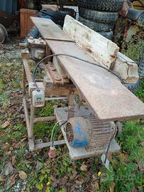 Vendo pialla per legno fissata su un cavalletto con ruote , attualmente monta un motore da 380 volt , ma facilmente sostituibile. Misura piano cm 152 x 20 . INFO 379 1906303