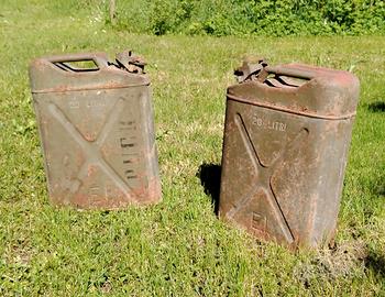 Vecchie taniche per carburante originali E.I., capacita' 20 lt. cad. Prezzo riferito per la coppia 40 €