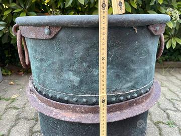 Vendesi antico calderone o paiolo in rame e ferro battuto tutto rivettato, presumo risalente alla seconda metà dell’Ottocento. Dimensioni: Diametro 49 cm, Altezza 59 cm, Peso 21 kg. L’oggetto è stato solamente pulito senza nessun tipo di trattamento. Cortesemente Solo Contatto Telefonico. Prezzo Trattabile. Solo Consegna a Mano. NO SPEDIZIONE. Maurizio Cell. 3498506303 Per Ricerca: Cose Vecchie Cose Antiche Ferro Battuto Oggetti Antichi Vecchi Oggetti Oggetti Vintage Arredamento Industrial