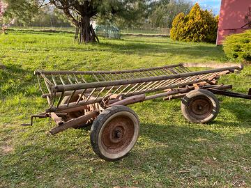 Vecchio carro da lavoro in legno e metallo Funzionante ma da restaurare, bellissimo come pezzo di arredamento da esterno, magari da mettere in giardino. Lunghezza: 3m Altrzza: 85cm Per info contattami!