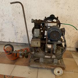 Regolarmente funzionante, il compressore e' fissato al di sopra ad un carrello in acciaio munito di 2 ruote che ne facilita gli spostamenti.