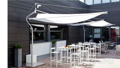 Vela ombreggiante-autoportante Larghezza 340cm Profondità 340cm Vela con ferzi radiali Tessuto Dacron bianco Base zavorrabile+copribase inox