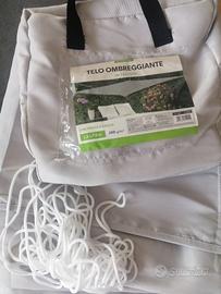 Vendo telo ombreggiante 3x3 colore grigio chiaro. Completa di borsetta portatelo e cordini per ancoraggio. Vendo per acquisto errato. Mai usata. Ottimo affare
