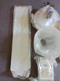 Nuovo ventilatore a 3 pale con luce da soffitto Tutto metallo bianco e vetro Comando a muro per gestire velocità delle pale e accensione luce. Tutto con 3 fili.