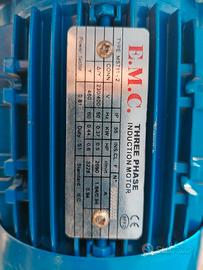 Vendo aspiratore/ventilatore centrifugo industriale trifase completo con motore elettrico EMC MS711-2 serie MS, nuovo e mai usato. Il motore è già assemblato con ventola centrifuga a chiocciola (dimensioni bocche e misure nelle foto). Caratteristiche motore: Potenza: 0,37 kW (0,5 HP) 2 poli, ~2800 giri/min a 50 Hz Tensione: 230/400 V (Δ/Y) Corrente: 1,64 A / 0,94 A Carcassa alluminio IP55, isolamento classe F Attacco flangia B3/B5 Ideale per: aspirazione industriale di aria, fumi, polveri leggere, officine, capannoni, piccoli aspiratori fai-da-te. Spese di spedizione a carico acquirente