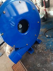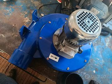 Questo oggetto è unventilatore centrifugo industriale, noto anche come soffiante o aspiratore a chiocciola. Funzionamento:Aspira l'aria assialmente e la espelle radialmente ad alta pressione grazie alla forza centrifuga. Utilizzo:Ideale per sistemi di canalizzazione lunghi, ricircolo aria, o aspirazione di polveri e trucioli in contesti industriali. Caratteristiche:Struttura robusta con corpo a spirale ("chiocciola") in metallo e motore elettrico integrato. Prestazioni:Capace di operare a ciclo continuo, generando pressioni statiche elevate rispetto ai ventilatori assiali. oggetto nuovo mai utilizzato
