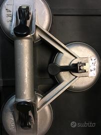 Copia di ventose a tre punti per trasporto lastre vetro ecc. portata kg 140, come nuove.