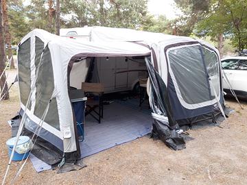 Vendo veranda (o avancorpo) pneumatica Outwell Reed 350 SA per roulotte, caratterizzata dal sistema di gonfiaggio "One-Go" che permette un montaggio rapido, ideale per famiglie grazie al suo spazio ampio e generoso. Si attacca alla caravan tramite un sistema senza pali e offre opzioni di espansione con un'estensione laterale o una camera supplementare, veranda usata ma in buono stato
