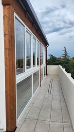 Vendo veranda realizzata in legno di abete, infissi in Pvc, tetto in pannelli coibentati finto coppo, grondaie e pluviali di scolo.