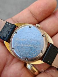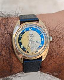 È un pezzo da collezione che non solo segna il tempo, ma racconta anche una storia di sport e design di metà Novecento. La patina sul quadrante, anche se è un segno del tempo, è spesso molto apprezzata dai collezionisti perché rende ogni pezzo unicoIl marchio Verdal ha una storia interessante, strettamente legata al mondo del ciclismo. Fondata in Belgio nel 1933 da Etienne Vermeersch, l'azienda faceva produrre i suoi orologi in Svizzera. Cassa placato oro 36mm cinturino anallergico vero toro. Orologio funziona molto bene. Calibro 1130 (AS 1130)