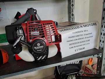 Modello Blue Bird FW 1610 Fune in acciaio da 5 mm x 80 metri Dotato di guida fune Motore 2 tempi 58 cc Traino diretto 13 quintali, 26 quintali con rinvio Prezzo Iva compresa Contattaci per la spedizione Se interessati chiamare