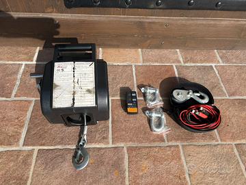 Verricello con telecomando senza fili. Portata 5000kg. Usato solo qualche vlta, praticamente come nuovo. Si collega ad una batteria di macchina, funziona a 12v.