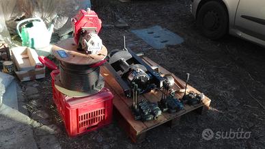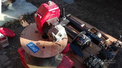 Verricello idraulico a vite senza fine modello RSH 4500 della ditta OMFB, completo di cavo in acciaio, completo di gancio (mt 50 omologato), pompa idraulica Casappa di adeguata portata, moltiplicatore di giri per attacco presa di forza trattore 1/3, leva di comando olio idraulico.
