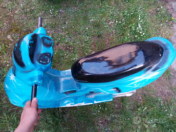 Vespa blu in vetroresina blu gioco da esterno utilizzabile tramite interramento ed eventuale inserimento molla intorno al supporto in ferro presente alla base ( vedi foto).Con alcuni segni del tempo.Ritiro a mano ,possibilità di individuazione posto dove effettuare lo scambio e possibilità di spedizione se concordata con acquirente.