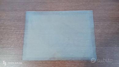 Vendo cira 200 lastre di vetro satinato,(vetro reso opaco da un processo chimico o meccanico ) bordo lucido superficie liscia e vellutata al tatto,larghezza 29,5 cm,altezza 21 cm, spessore 3 mm,vendo in blocco.