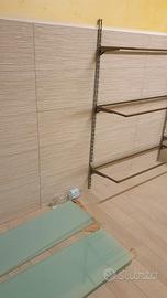 Vetrina per negozio d'abbigliamenti e altri attività, molto pratico ( Può creare diversi alteze), facile da montare e smontare, molto resistente più o meno 10 a 15 kg. I vetri sono molto particolare con una pelicola interna per evitare che di scricciolare in caso di spacatura. Ma comunque sono molto resistenti ed anche elegante. Misura: (larghezza 30 cm, e 33cm, e lunghezza 103 cm)