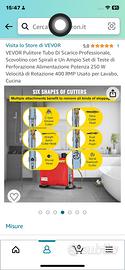 VEVOR Pulitore Tubo Di Scarico Professionale, Scovolino con Spirali e Un Ampio Set di Teste di Perforazione Alimentazione Potenza 250 W Velocità di Rotazione 400 RMP Usato per Lavabo, Cucina, bagno.