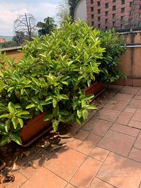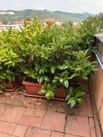 Vendo 8 piante di Viburno lucido attualmente in 4 vasi (2 per vaso) in ottima salute e molto rigogliose. Ideali per trasferirle in giardino e formare una siepe. Nelle foto le piante sono ancora da potare.