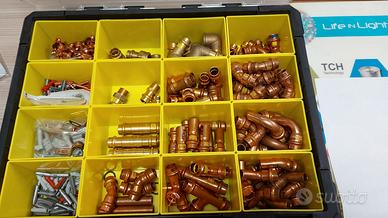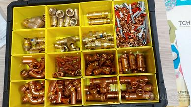 VENDO VIEGA RACCORDI GAS ACQUA RAME E BRONZO APRESSARE NUOVI MAI USATI CAUSA PROSSIMA CESSAZIONE ATTIVITA’ DIAMETRI 15 – 18 – 22 – 28 PER PEZZI TOTALI N° 349 COME DA FOTO ESCLUSO CASSETTE - SE INTERESSATI INVIARE INDIRIZZO EMAIL VENDO INBLOCCO