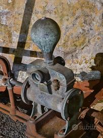 antica pompa a mano per travaso vino o acqua. Datata inizio secolo in bronzo e ferro adatta per decorare locali ville casali. Design indastrial
