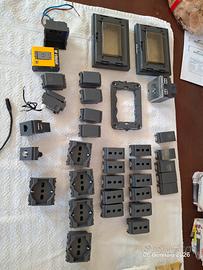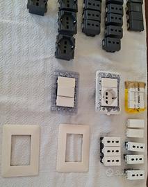 Vimar IDEA 2 supporto 16813.Q grigio IP55 - 11€ l'uno 11 Bpresa 16203 grigio - 6 € l'una 2 deviatore 16005 grigio - 7 € l'uno 1 interrutore 16000 10A grigio - 6 € 1 interruttore 16001 16A grigio - 7 € 1 pulsante 16080 grigio - 5 € 1 interruttore luminoso 16021 16A grigio - 7€ 1 presa x telefono 16335 RJ11 6/4 grigio - 16 € 1 supporto a 3 moduli 16713 grigio - 1 € 1 presa x TV coassiale semplice 16320 - 6 € Vimar PLANA 3 Bpresa 14203 bianca - 4 € 5 tappi copriforo 14041 - 0.50 € l'uno Biticino MATIX 2 supporti a 3 moduli 503SA - 0.60 € l'uno 1 presa Schuko AM5440/16 - 4 € 1 interruttore 16A AM5001 - 3 € 2 placca bianca 3 moduli AM4803 - 2€ l'una 3 tappi copriforo bianco AM5000 - 0.50 l'uno 1 presa Matrix Triplex 16A bianco - 9 €