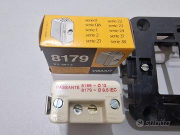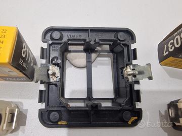 Interruttori luminosi art.8037 €5 cad. , prese tv passanti art. 8179 €4 cad., supporti 2 posti cassetta rotonda €2 cad., vari pezzi nuovi.