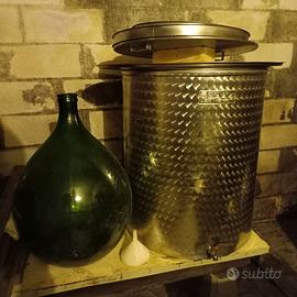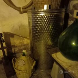 Vendo varie attrezzature per fare vino, diraspatrice inox, tini sani in plastica (sempre tenuti in cantina mai sole-ghiaccio), botti in inox con coperchio varie misure (200-300-400 litri), due botti in vetroresina di cui una con coperchio ad aria ermetico, più damigiane in regalo.