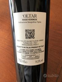 6 bottiglie Vino Rosso Oltar di Paolo Cottini. Cabernet Sauvignon,CorvinaCorvinone 2020. Disponibili 50 cartoni. Vendo a 55€ a cartone da 6.