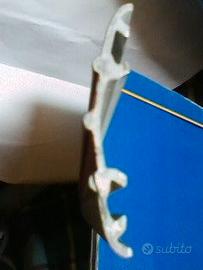 SET viti di fissaggio + 9 Canaline profilati alluminio + 5 cerniere per ante + 2 kit angolo interno : a) Set per bloccaggio mobilio di VITI a testa cava (brugola piccola) svasata (cioè annegata a filo). Brunite Ø 8 lungh. 87 mm. ovvero: 20 viti: 16 filettate per 1/3 , + 4 con filettatura totale 16 barilotti cilindrici filettati Ø esterno 23, altezza 15 4 nottolini piccoli cilindrici filettati 4 rondelle rondelle acciaio brunito svasatura conica 4 rondelle rondelle teflon svasatura conica cadauna Vite con barilotto eur 2 (anziché 4,10) il set completo eur 35 (anziché 80) ...................................................... b) Gruppo di 9 Canaline profilati in ALLUMINIO anodizzato verniciati a caldo in grigio e due bande marrone-rosso lungh. cm. 58 x 6 , spessore 1,1 ad arco. Più, in regalo, UN profilato di metà altezza: cm. 3 Profilatura interna per l'incastro. Vedi foto. Adatte anche per battiscopa e/o copricavi anche a terreno. eur 2 cad. Il gruppo di 9+1 solo 10 eur ................................................ c) 5 Cerniere Wurth per ante mobili. "EasyClick" Con ammortizzatore. battuta 18mm -foro mm.35 in acciaio nichelato. Usate poco. il gruppo di 5 eur 10 ................................. d) n. 2 confezioni NUOVE Sigillate di ANGOLO INTERNO VARIABILE AICN W 03066 marchio IBOCO (Bocchiotti-Hager) essenziale per l'installazione di circuiti elettrici in ambienti con angolature particolari. È in grado di variare l'angolo di 65°, dal 70° al 135°, senza necessità di tagliare il pezzo. Il prodotto è composto da 4 parti facilmente montabili. È dotato di fondo con due separatori per garantire la continuità di separazione dei circuiti anche in angolo. è certificato IMQ EN 50085-2-1 e CE, Colore: BIANCO RAL 9001 Dimensioni in mm: A: 72 B: 72 C: 24 peso 20 gr. la coppia al prezzo di uno : eur 6,50 ------------------- >> altre foto a richiesta <
