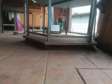 Voliera esagonale L100/120 x 200H con base in legno su ruote, completa di accessori