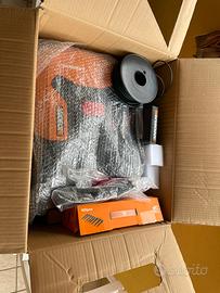 Acquistato a giugno 2023, messo in azione solo in estate. Ottimo robot funzionante con filo perimetrale facile da istallare. Adatto per prati fino a 300mq. Inclusa bobina con restante filo perimetrale+ 100 picchetti nuovi per il fissaggio . LA BATTERIA NON È INCLUSA. ( si trovano originali a circa 30/40 euro o compatibili anche a meno)