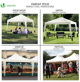 VOUNOT Gazebo Pieghevole da Giardino 3x3 M, Mercato Tenda Pop up con 4 Sacchi di Sabbia di Peso e Sacca di Trasporto, Bianco