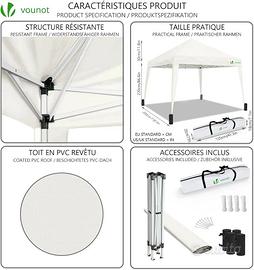VOUNOT® Gazebo Pieghevole da Giardino 3x3 M, Mercato Tenda Pop up con 4 Sacchi di Sabbia di Peso e Sacca di Trasporto, Bianco.