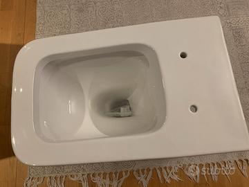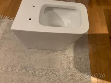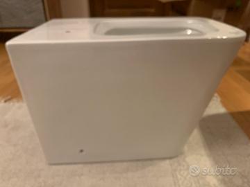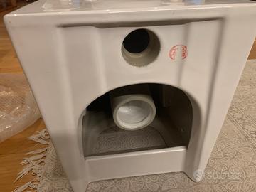 Vado da terra marca Goccioline mai usato. Scarico e tubo di cacciata orizzontali. Colore bianco. Completo di sedile. Nella scatola originale.