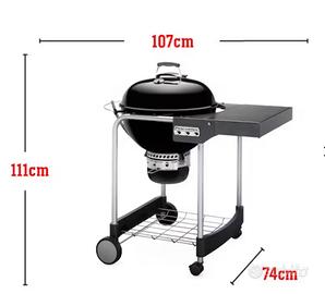Vendo barbecue Weber Performer come nuovo, utilizzato pochissime volte. Diametro della superfice di cottura: 57 cm. Valuto eventuale scambio con barbecue Weber a gas di mio gradimento (no Master-Touch). Dimensioni - coperchio chiuso: 110,5cm H x 106,7cm L x 73,7cm P Diametro: 57 cm Peso: 32,6 kg Tipo combustibile: Carbone Maniglie in nylon rinforzato con fibre di vetro Griglia di cottura incernierata in acciaio placcato Gourmet BBQ System Rotelle orientabili bloccabili Ruote robuste per ogni stagione Ganci per utensili Valvola di aerazione in alluminio resistente alla ruggine 2 Cesti separa carbone Termometro integrato sul coperchio
