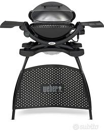 Weber Q1400 BBQ Elettrico con Supporto, sup. cottura 43 x 32 cm, barbecue portatile, sup. cottura in ghisa smaltata divisa in 2, coperchio e corpo in alluminio pressofuso - Grigio scuro (52020853)