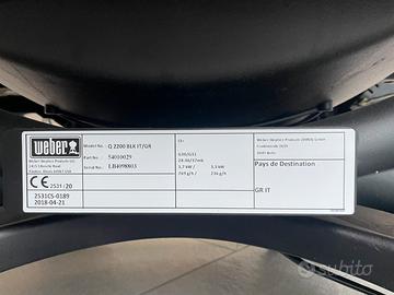 Vendo WEBER a gas mod. Q2200 con copertura + carrello pieghevole comodo per spostamenti. Visibile a Pordenone. Non spedisco.