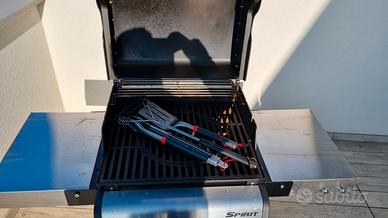 vendo Weber Spirit con ruote e bombola inclusa ricaricabile. Vendo per inutilizzo (usato una decina di volte). comprato nuovo nel 2023 a quasi 600 euro. Ha due ammaccature a causa della grandine del luglio 2023 ma che non danno nessun problema (vedi foto). Regalo strumenti BBQ Weber originali in foto e copertura di protezione per ricovero. Ritiro a casa mia.