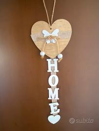 Bellissimo addobbo da appendere in legno con cuore e scritta Home. Lunghezza 36 cm