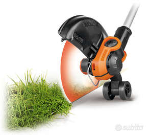 Passa da decespugliatore a tagliabordi in pochi secondi, grazie alla testa orientabile, ed alla ruota di supporto removibile per taglio del bordo; dotato di protezione per fiori e ornamenti