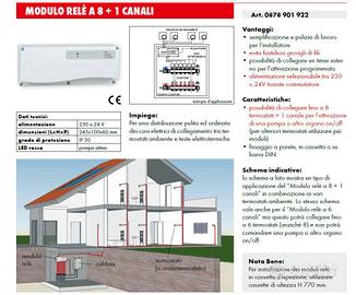 • possibilità di collegare fino a 8 termostati + 1 canale per l’attivazione di una pompa o altro organo on/off (per ulteriori termostati utilizzare più moduli);