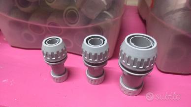 Come da Foto Raccordi e Manicotti ( accessori ) per la Realizzazione di Impianti Elettrici Esterni. Condizione Nuovo, non cartonati. Di seguito, quantità disponibile. N° 74 Raccordo Tubo -Tubo Diametro 16 mmq IP65 N° 82 Raccordo Tubo -Tubo Diametro 20 mmq IP65 N° 100 Raccordo Tubo -Tubo Diametro 25 mmq IP65 N° 130 Raccordo Tubo -Tubo Diametro 32 mmq IP65 N° 10 Raccordo Tubo -Tubo Diametro 40 mmq IP65 N° 2 Raccordo Tubo -Tubo Diametro 50 mmq IP65 N° 30 Raccordo Tubo -Tubo Diametro 16 mmq IP40 N° 20 Raccordo Tubo -Tubo Diametro 20 mmq IP40 N° 18 Raccordo Tubo -Tubo Diametro 32 mmq IP40 N° 5 Raccordo Tubo -Tubo Diametro 40 mmq IP40 N° 90 Raccordo Tubo - Guaina Diametro 16 mmq IP65 N° 95 Raccordo Tubo - Guaina Diametro 20 mmq IP65 N° 73 Raccordo Tubo - Guaina Diametro 25 mmq IP65 N° 3 Raccordo Tubo - Guaina Diametro 40 mmq IP65 N° 1 Raccordo Tubo - Guaina Diametro 50 mmq IP65 N° 40 Raccordo Guaina - Scatola Diametro 20 mmq IP65 N° 43 Raccordo Guaina - Scatola Diametro 25 mmq IP65 N° 10 Raccordo Guaina - Scatola Diametro 32 mmq IP65 N° 7 Raccordo Guaina - Scatola Diametro 40 mmq IP65 N° 25 Raccordo Tubo - Scatola Diametro 25 mmq IP65 N° 4 Raccordo Tubo - Scatola Diametro 40 mmq IP65 N° 10 Curva Flessibile Diametro 25 mmq IP65 N° 129 Fischer Clip fissatubo a sella SCH 32-42 mm Art.-Nr. 501216 Valore dell'intero stock +/- Euro 870 Prezzo unica soluzione/stock