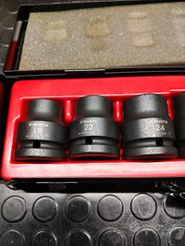 SET NUOVO !mai usato in cassetta metallica WURTH art.714 900 500 8 bussole da 19 a 33 metriche . Sul sito dove le ho acquistate costano 215€