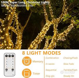 800 LEDs Luci di Natale Impermeabile 8 Modalità Luci di Fata all'aperto